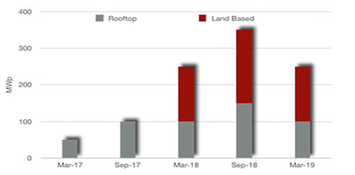 Following graph (figure #1) shows the plan of deployment of solar generation: As can be seen that initially rooftop projects are taken to create needed momentum of the project.
